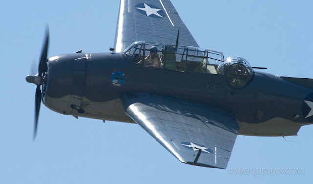 I used a slow shutter speed of around 1/200th of a second or slower for many of the photos taken here. The main thing that people look for in aviation photography seems to be the blur on the moving propeller. Getting a complete prop revolution to make a complete circle is the holy grail of airshow photography.